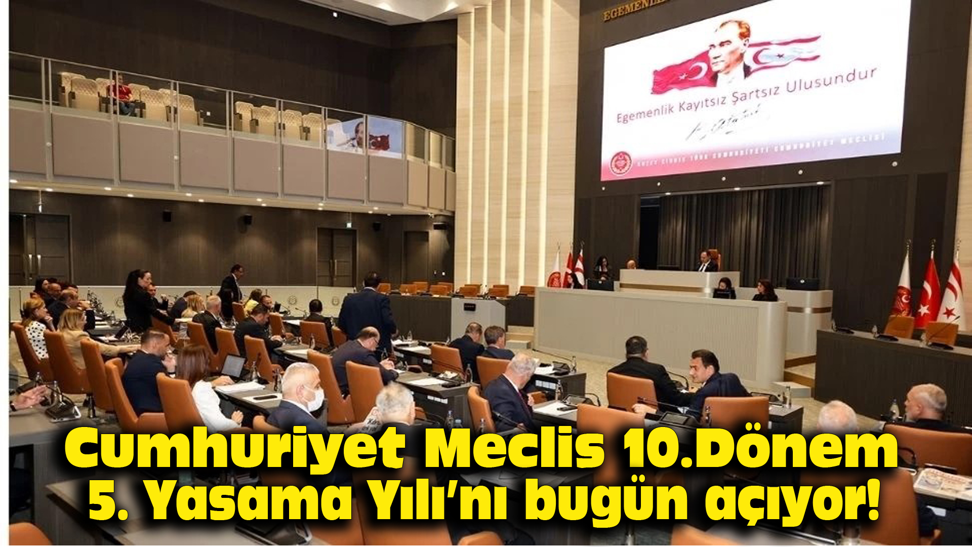 Cumhuriyet Meclisi, Onuncu Dönem Beşinci Yasama Yılı’nın ilk toplantısını bugün saat 10.00’da gerçekleştirecek. Meclis, temmuz tatilinin ardından ekim ayının ilk iş günü yeniden açılmış olacak. Cumhuriyet Meclisi, Onuncu Dönem Beşinci Yasama Yılı’nın ilk toplantısını bugün yapacak. Meclis’ten yapılan açıklamaya göre, Cumhuriyet Meclisi’nin, Onuncu Dönem Beşinci Yasama Yılı, ekim ayının ilk iş günü olan 1 Ekim Çarşamba günü saat 10.00’da yapılacak toplantı ile başlayacak. Meclis İç Tüzüğü’ne göre, Cumhuriyet Meclisi, temmuz ayının ilk günü başlayan tatilin ardından ekim ayının ilk iş günü açılır. Meclis, geçen dönem son toplantısını 30 Haziran’da yapmıştı. Toplantıda, Polis Örgütü (Kuruluş, Görev ve Yetkileri) (Değişiklik) Yasa Tasarısı görüşülürken, nisap yetersizliği nedeniyle oturuma ara verilmesinin iki saat sonrasında Genel Kurul yeniden toplanma girişiminde bulunmuş ancak nisap yine sağlanamamıştı. Meclis Başkanı Ziya Öztürkler, gelecek olağan birleşimin yeni yasama yılında olacağını söyleyerek birleşimi kapatmıştı.