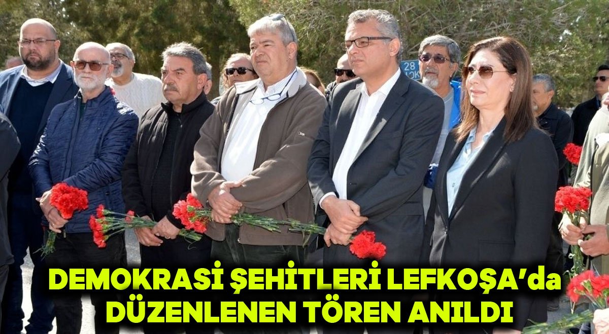 Demokrasi Şehitleri, Lefkoşa Mezarlığı’nda düzenlenen törenle anıldı. Anma törenine Cumhurbaşkanı Tufan Erhürman, Ana Muhalefet Cumhuriyetçi Türk Partisi (CTP) Genel Başkanı Sıla Usar İncirli, CTP eski başbakanlarından Özkan Yorgancıoğlu, bazı CTP milletvekilleri ile siyasi parti, sendika ve dernek temsilcileri ile aileler katıldı. Törende, Demokrasi Şehitleri anısına iki dakikalık saygı duruşunda bulunuldu. Konuşmaların ardından mezarlara karanfiller bırakıldı.